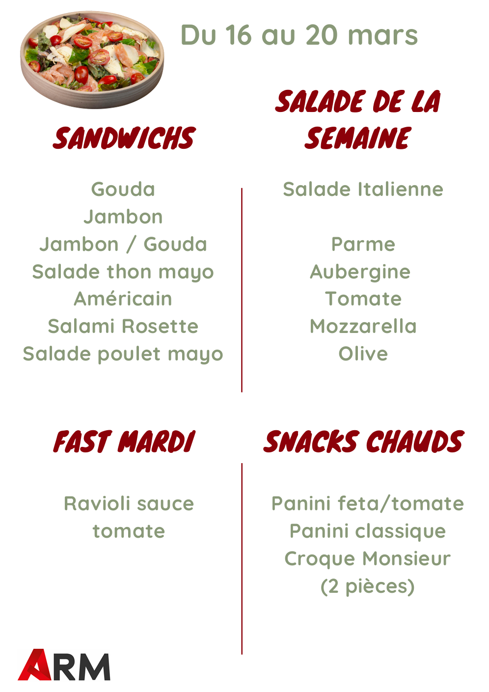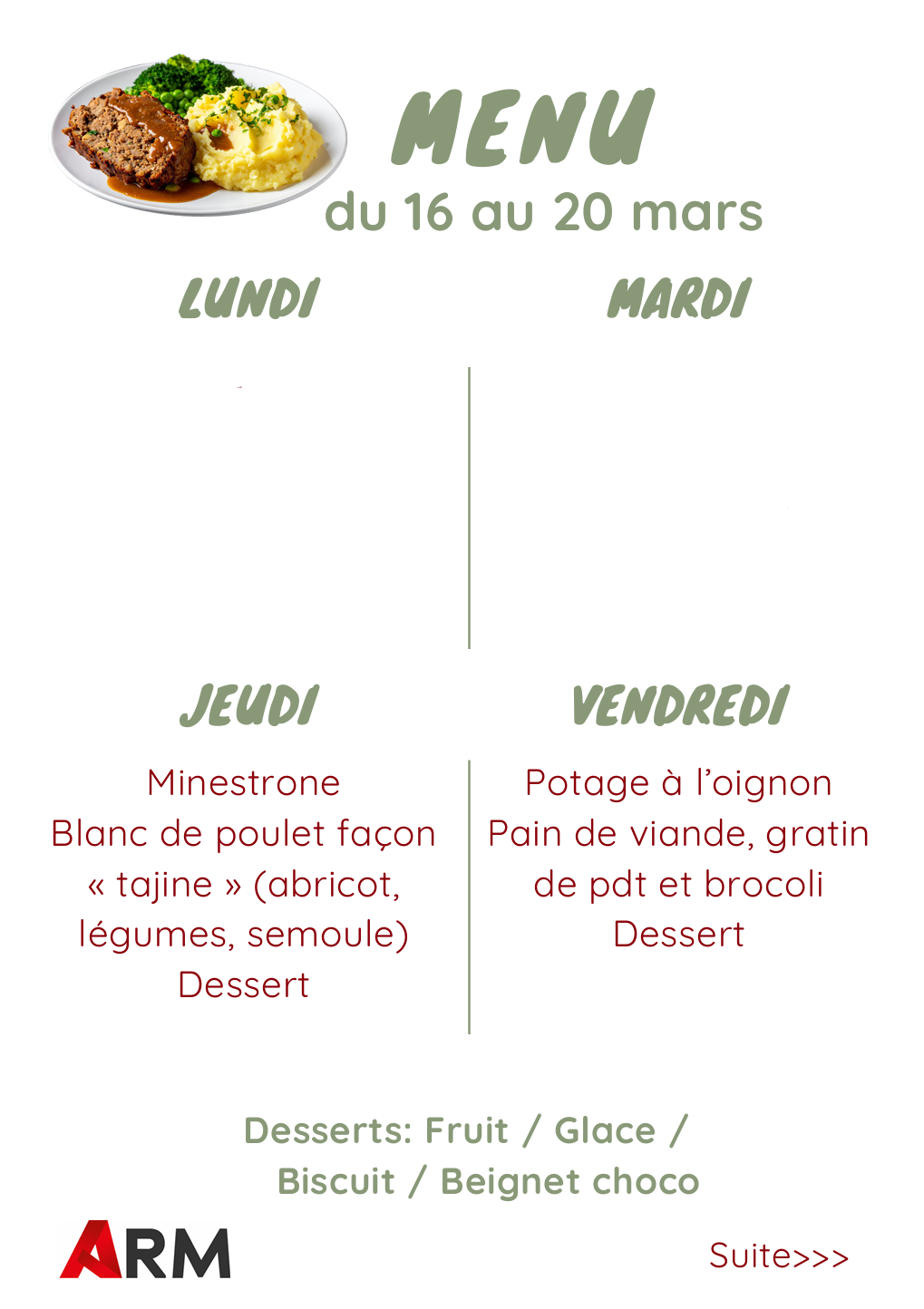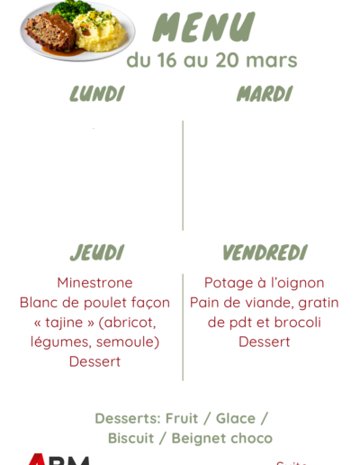 Menu du 16 au 20 mars